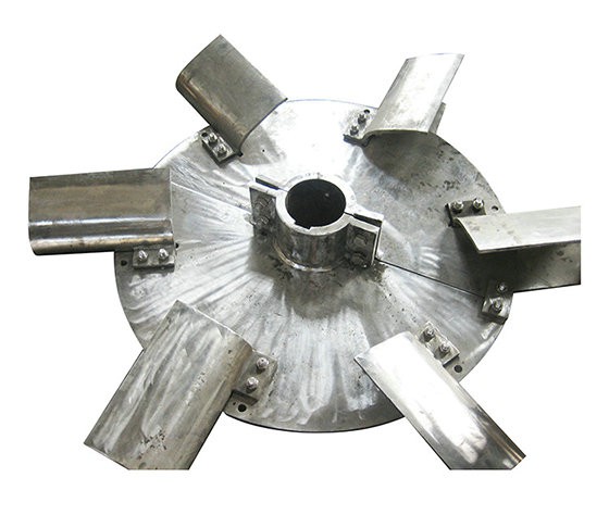 渦輪攪拌器亦稱透平式葉輪,是使液體、氣體介質強迫對流并均勻混合的器件。其有多種樣式,主要部分是渦輪。此輪在旋轉時產生很大的離心力。它可把液體拋向四周。普通的渦輪可產生輻射液流及切線液流,轉速加快時輻射液流則占優勢。應用渦輪式攪拌器,不論液體的粘度高低均可很好地攪拌。