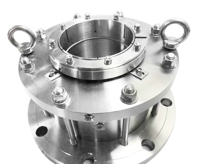 機械密封是一種旋轉機械的軸封裝置。比如離心泵、離心機、反應釜和壓縮機等設備。由于傳動軸貫穿在設備內外,這樣,軸與設備之間存在一個圓周間隙,設備中的介質通過該間隙向外泄漏,如果設備內壓力低于大氣壓,則空氣向設備內泄漏,因此須有一個阻止泄漏的軸封裝置。軸封的種類很多,由于機械密封具有泄漏量少和壽命長等優點,所以世界上機械密封是在這些設備主要的軸密封方式。機械密封又叫端面密封,在國家有關標準中是這樣定義的:“由至少一對垂直于旋轉軸線的端面在流體壓力和補償機構彈力(或磁力)的作用以及輔助密封的配合下保持貼合并相對滑動而構成的防止流體泄漏的裝置。